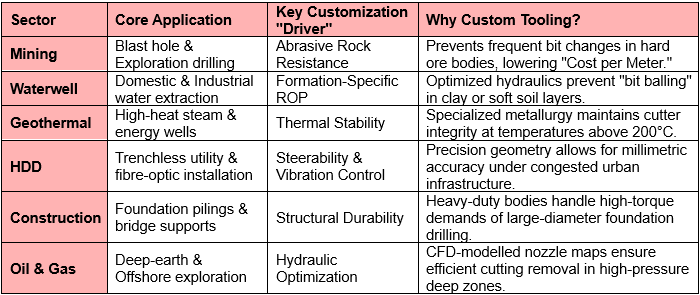 Sector-Specific Drivers for Customization: The demand for custom-engineered tools isn't limited to a single niche; it is a cross-industry revolution. At Rockpecker, we have observed this trend accelerating across all major drilling verticals: